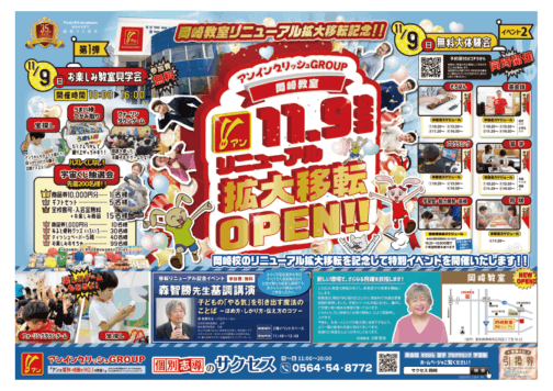 アンイングリッシュGROUP【岡崎教室】のリニューアル拡大移転を記念して、どなたでも参加いただける楽しいイベント「アンAN祭」を開催いたします。