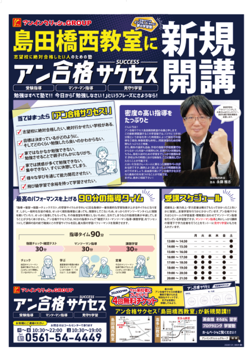 島田橋西教室に〈アン合格サクセス〉が新規開校