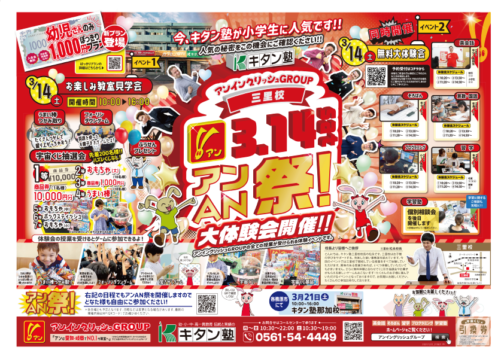 アンAN祭-大体験会 3/14(土)キタン塾【三里校】