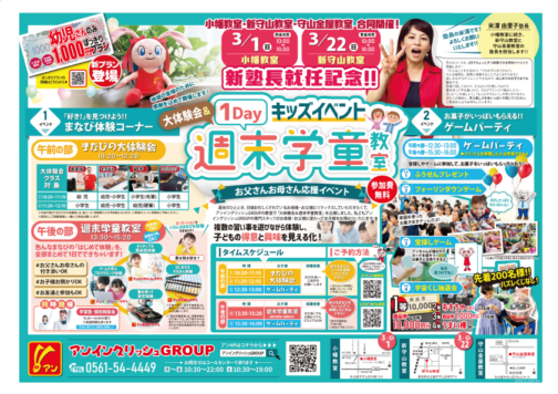 1Dayキッズイベント「大体験会&週末学童教室」3/22(日)【新守山教室】