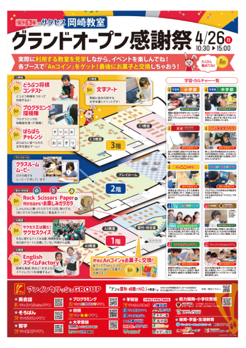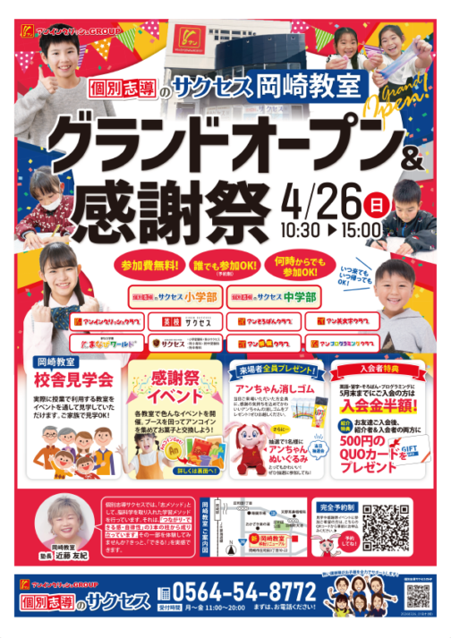 サクセス岡崎教室グランドオープン&感謝祭 4/26(日)【岡崎教室】