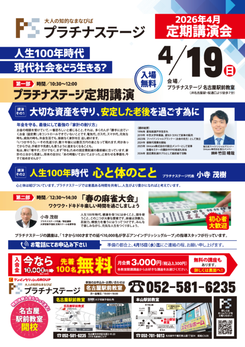 2026年4月定期講演会開催【プラチナステージ】