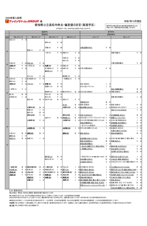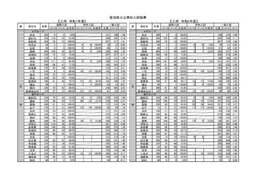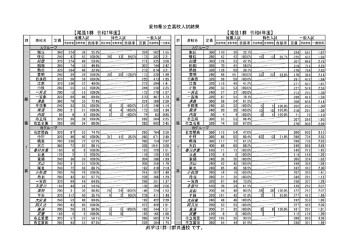 ※ 全日制単位制高校(尾張学区:守山・中川青和・日進・佐屋・武豊、三河学区:豊野・幸田・時習館・御津あおば)の学力検査については、5教科のうち得点の高い3教科を2倍した上で、他の2教科を合計する傾斜配点を行う。