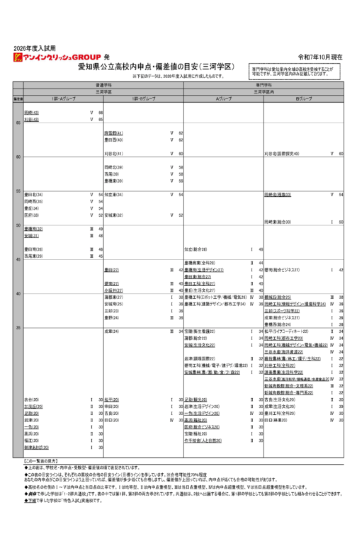 2.尾張学区の場合、学区内の1群と2群のどちらにするかを決定します。1群のAグループと2群のBグループのように群をまたがって出願することはできません。また、専門学科は全県1学区で、群の区別はありません。