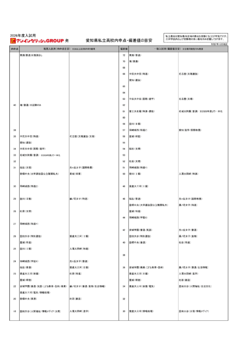 ・愛工大名電高校:内申点と当日点で総合的に判定。近年は当日点重視傾向