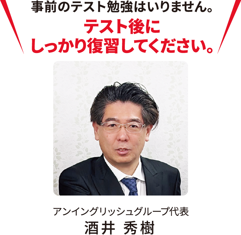 中学校の定期テストは、最近学習した単元内容がどのくらい身についているかを判断するテストです(学校の先生が成績を付けるために、このようなテストになっています)。また各種模擬試験は「今までの学習範囲で高校入試問題を作成したとするとこんな問題になりますよ」という方針で作問されているテストが多いようで、その模擬試験を解くことで、志望校合格率を判断出来ます。どちらのテストも大切なテストではありますが、現在の学力を測るためのテストであって、今後の学力を伸ばすために作られたテストではありません。今後の学力を伸ばすために必要なテストは、「今まで学習したことが、どのくらい身についているのか否か、取りこぼしているところはどこかをチェックするテスト」です。アン中学生テストは、その重要なことをチェックできるテストとしてスタートいたしました。アン中学生テストは、今のテスト結果に満足できず、ワンランクもツーランクもアップさせの志望校合格を勝ち取るためのテストです。受験後の復習をその他のテスト以上にしっかり取り組んでいただくことで、確実な実力を形成することが出来ます。塾生の皆さんの学力伸長を応援します。
