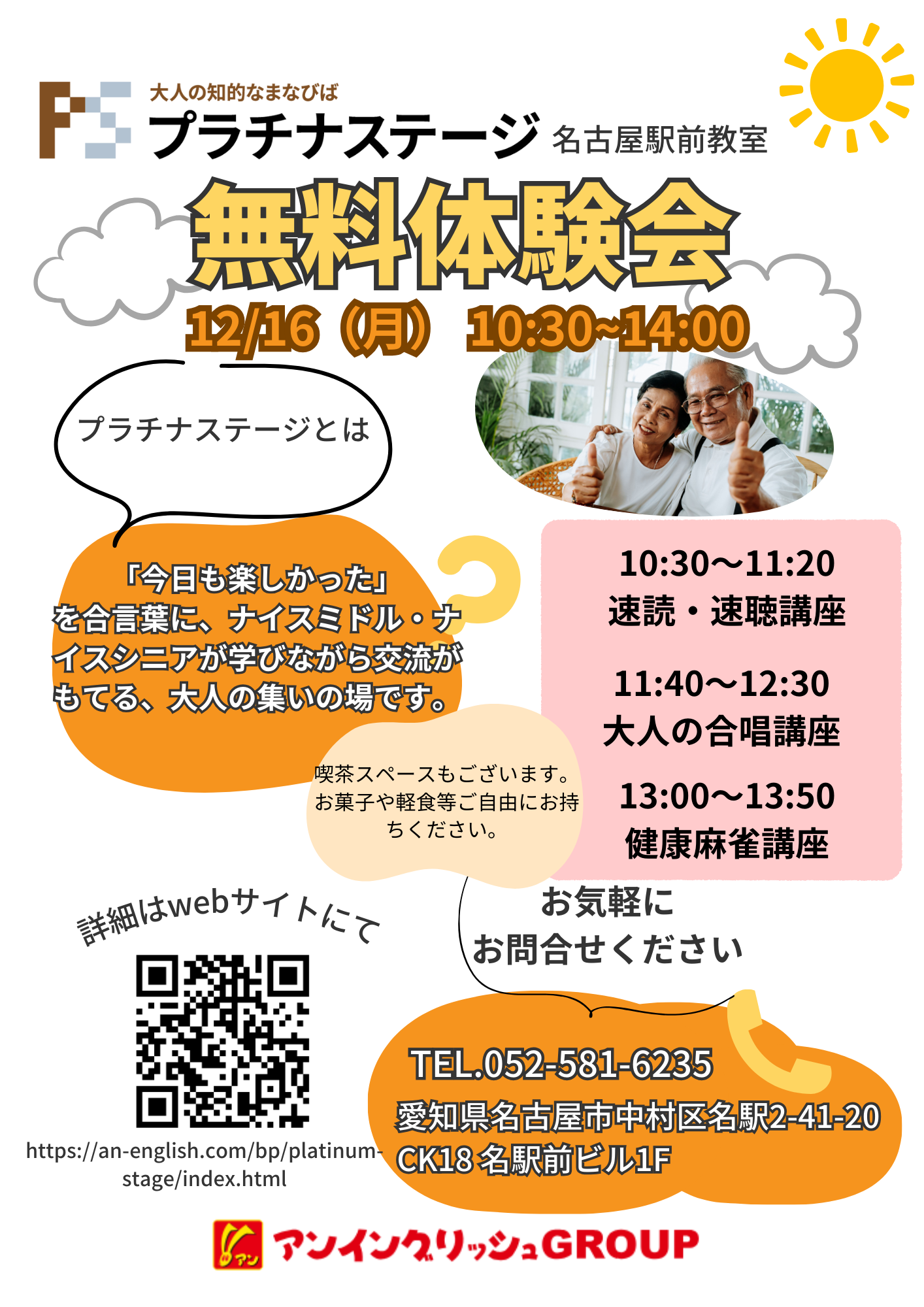 12/16(月)名古屋駅前教室「無料体験会」開催